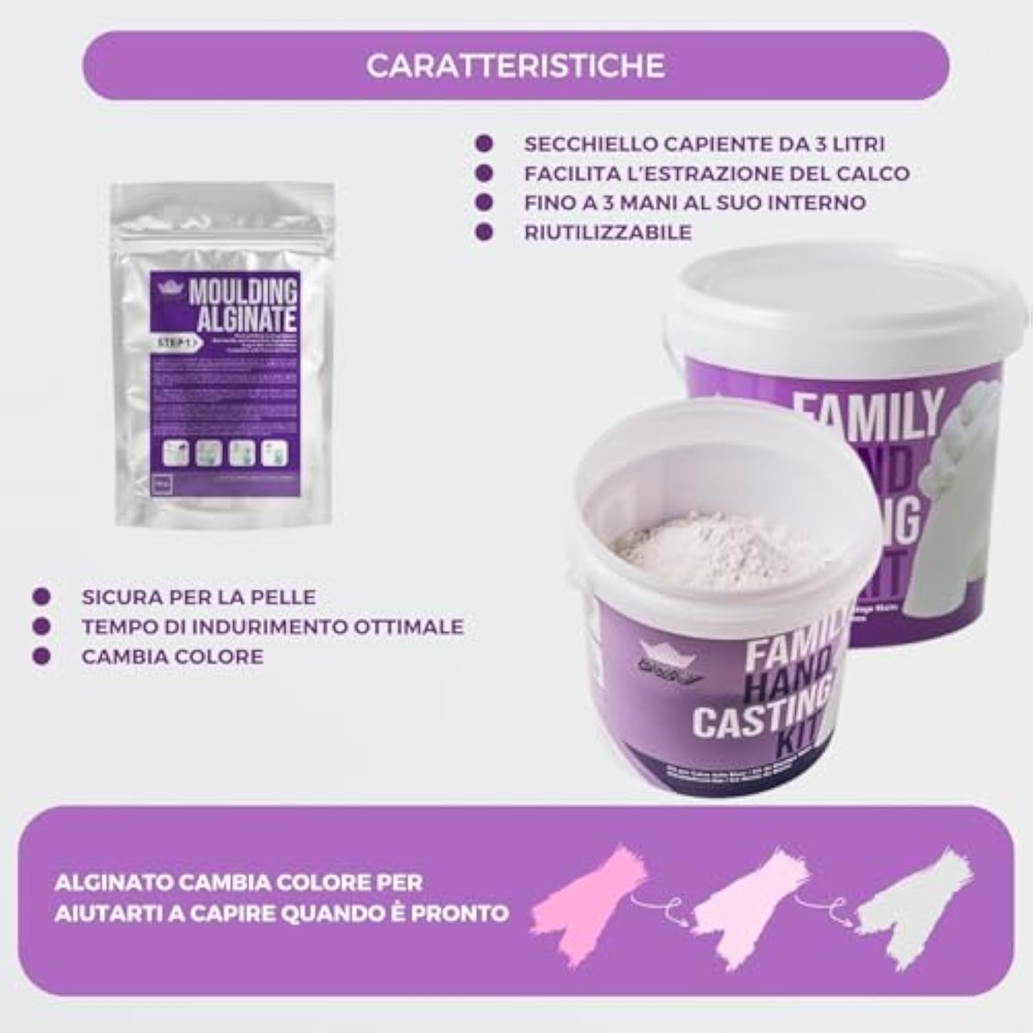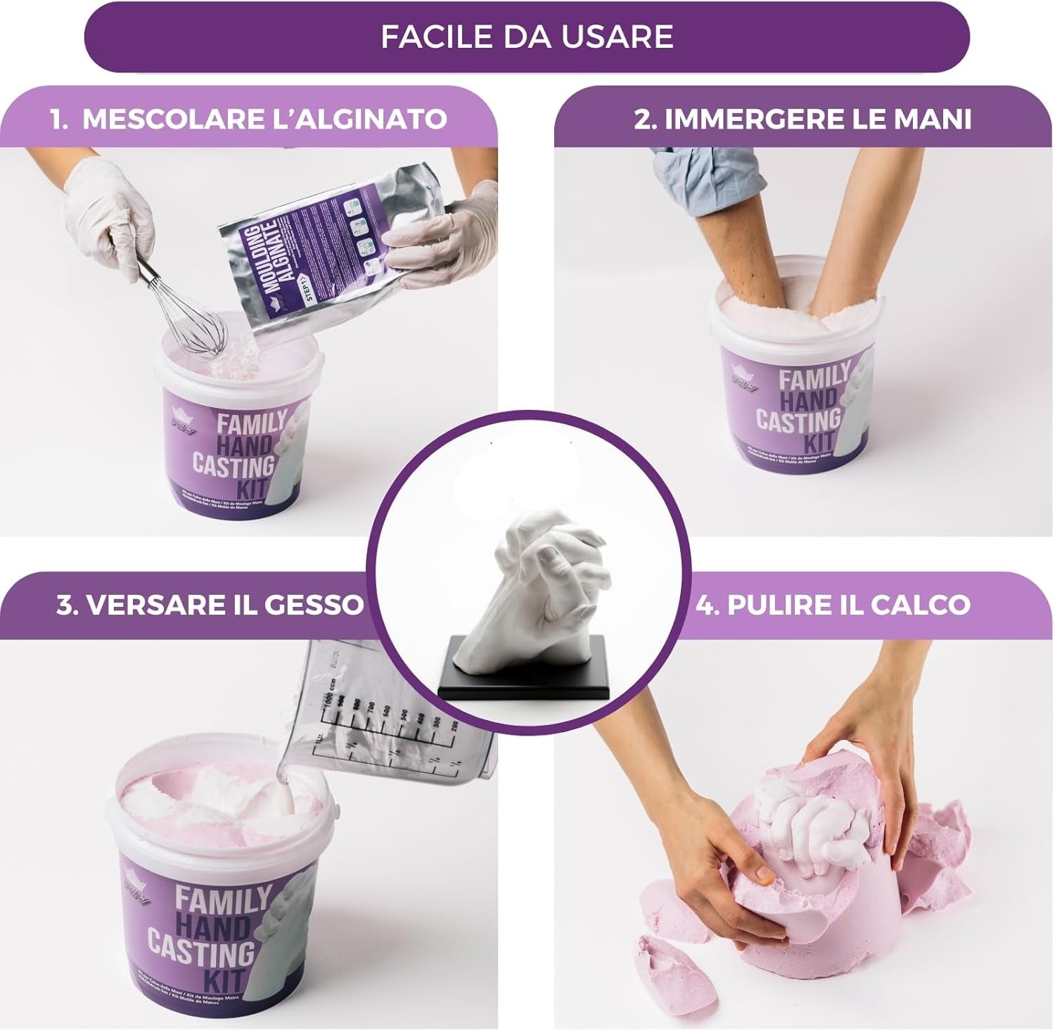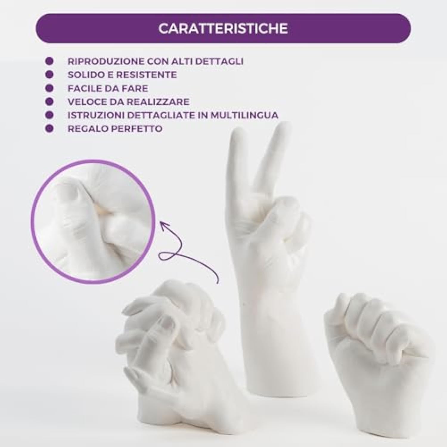 Incluso nel Kit: Manuale con istruzioni, Pasta dell'Impronta, Pasta Forever, Vernice Sigillante, Pennello Colorato e Video Tutorial dettagliato.
