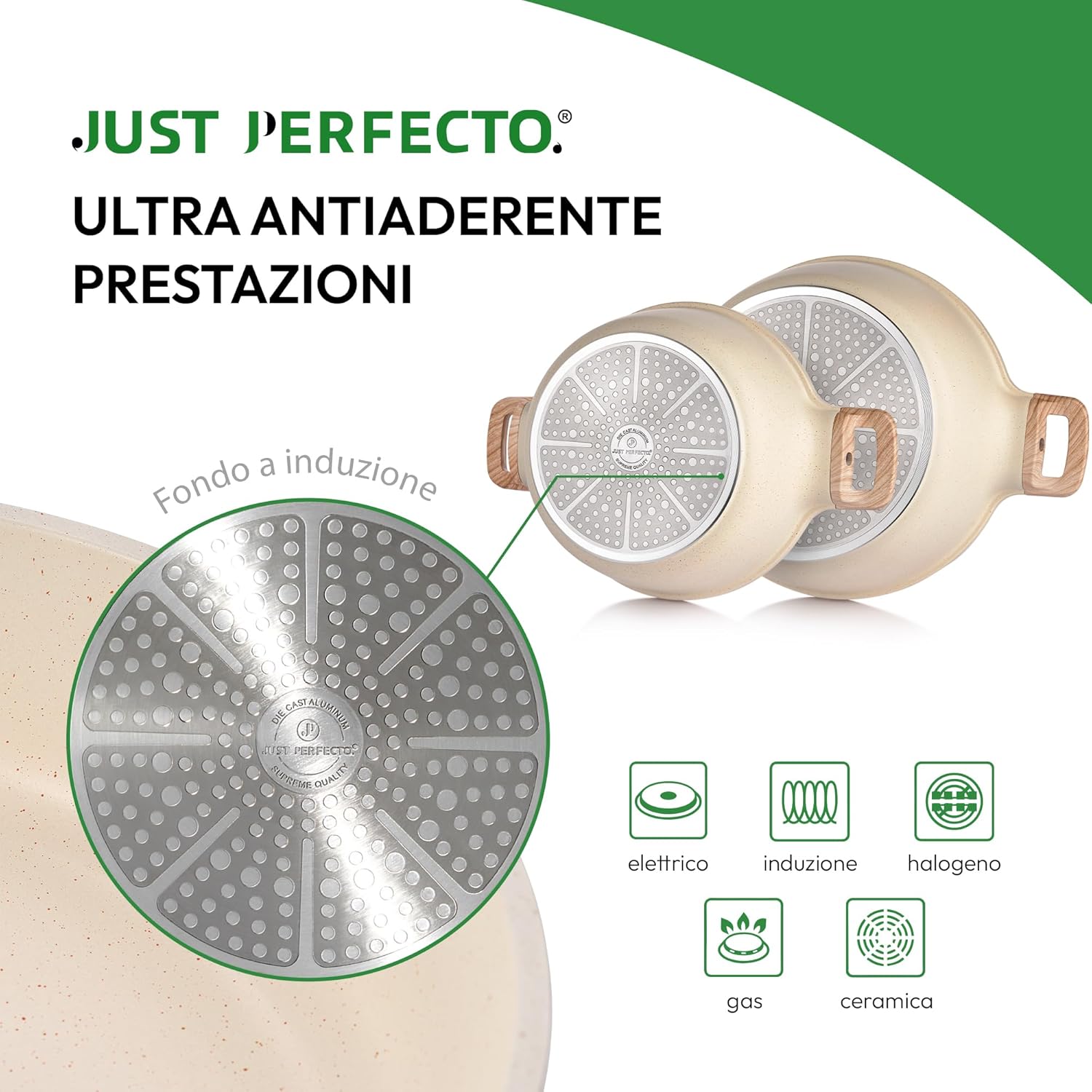 JUST PERFECTO Batteria Pentole e Padelle a Induzione, Set Padelle Antiaderenti Per tutti i piani cottura, Batteria di pentole antiaderente 24/28cm con Coperchi, set pentole induzione senza pfoa e ptfe
