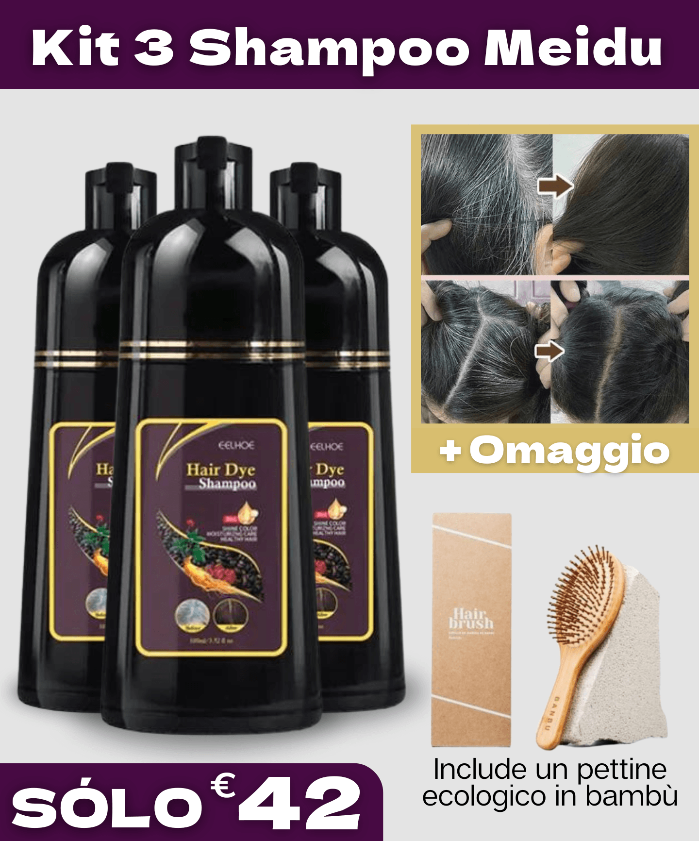 Shampoo 3 in 1 per Capelli Grigi + Pettine Ecologico in Bambù in Omaggio